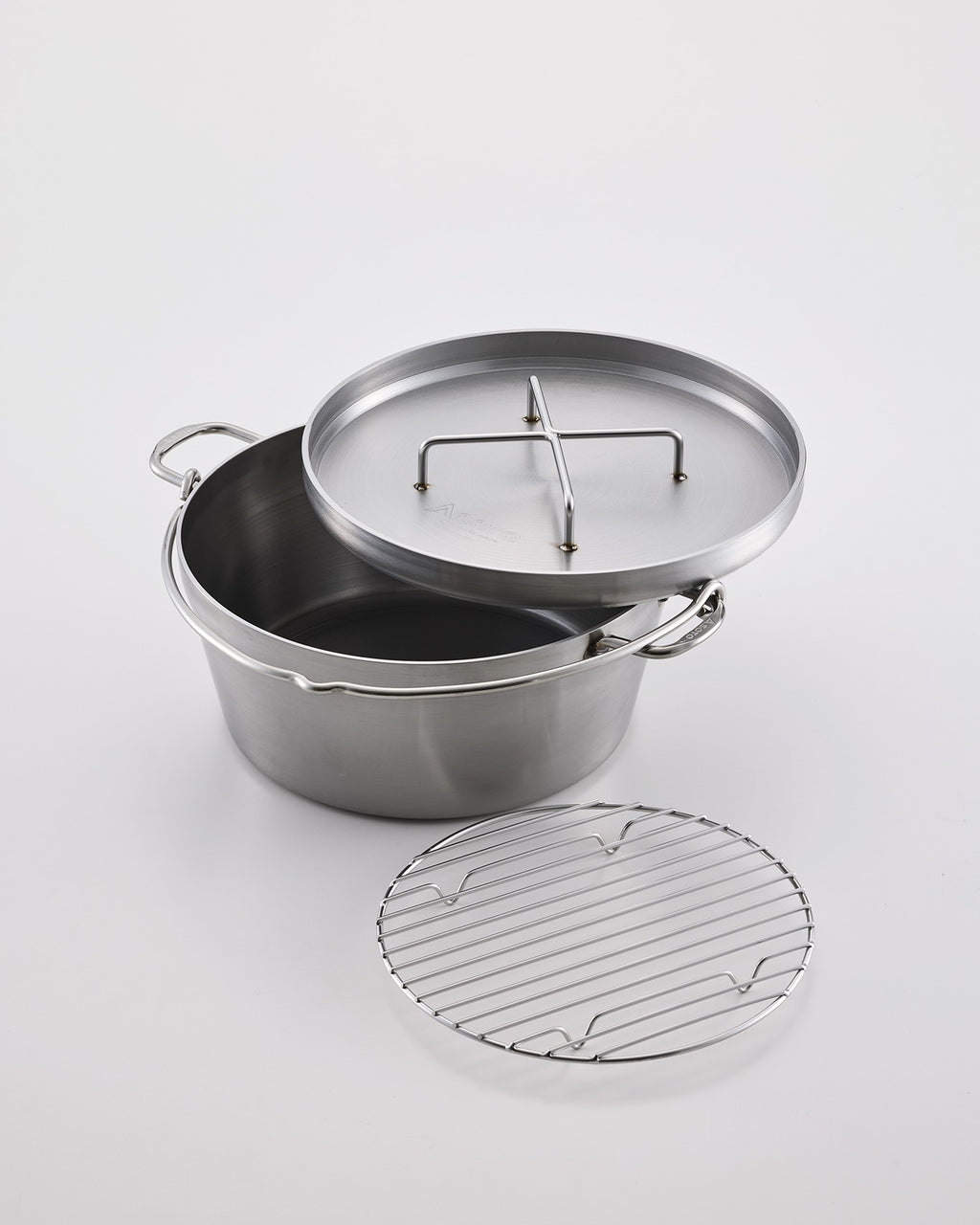 丸洗いできるので扱いがとても楽です。丈夫なのでガシガシ洗えます。 ステンレスの輝きも美しく、日にかけたあともススの汚れもすぐわかります。 ダッチオーブンとして外観がカッコいいので満足感も高いです。 さすがに鋳鉄製に比べると蓄熱効果はやや低いものの充分です。 総合的に満足度の高い製品だと思います!