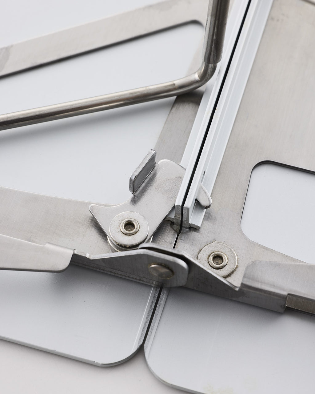 天板:アルミニウム、スタンド:ステンレス、専用収納ケース本体・ひも:ナイロン、ひも留め:樹脂