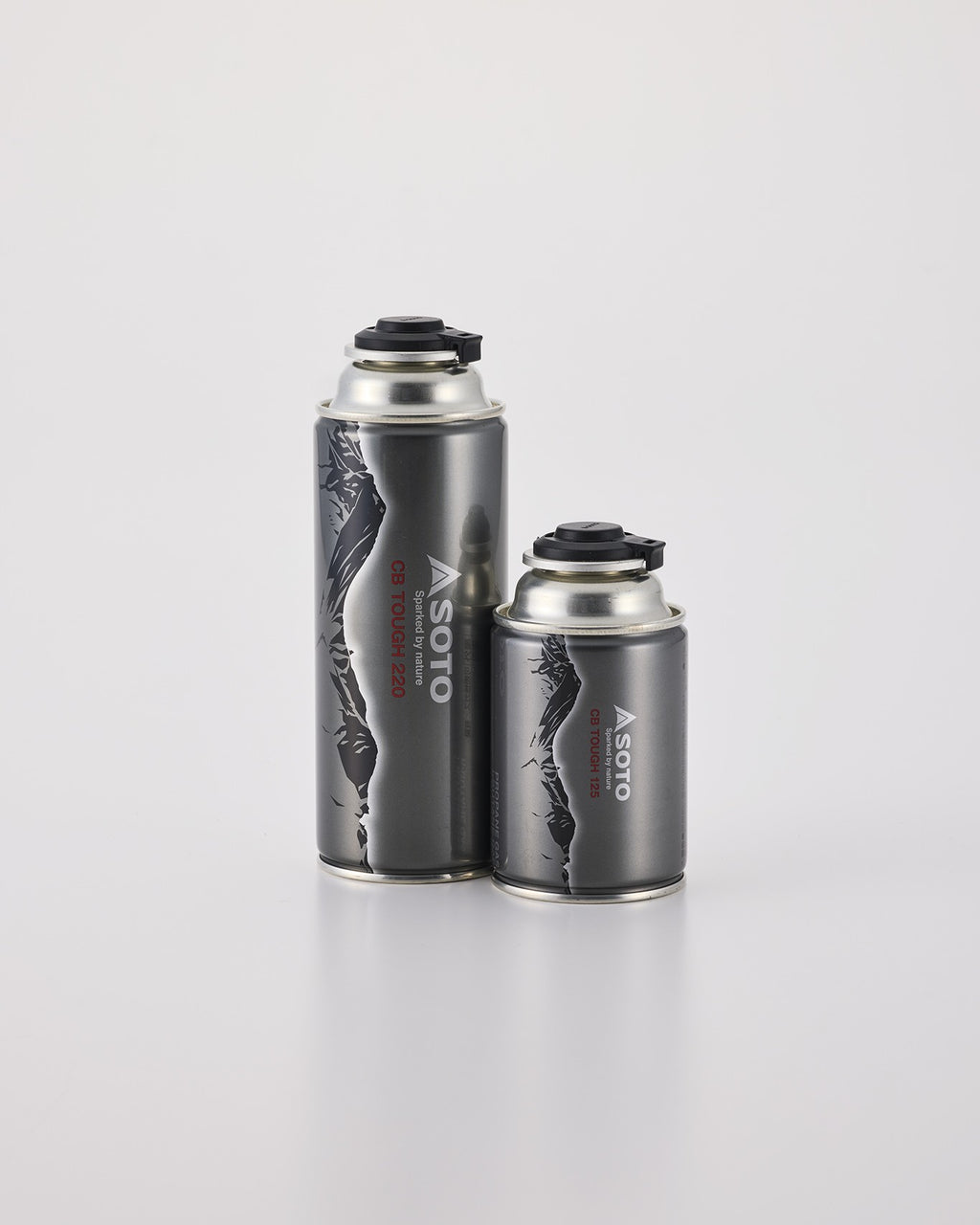 CB TOUGHは通常の容器と比べて肉厚な部品を使用することで 耐圧性の高い容器となっています。 これは工業系のボンベにも使用されている実績があり、 圧力の高いプロパンガスを、多く配合する事ができるため寒さに強く、 ー5℃の環境までお使い頂くことができます。