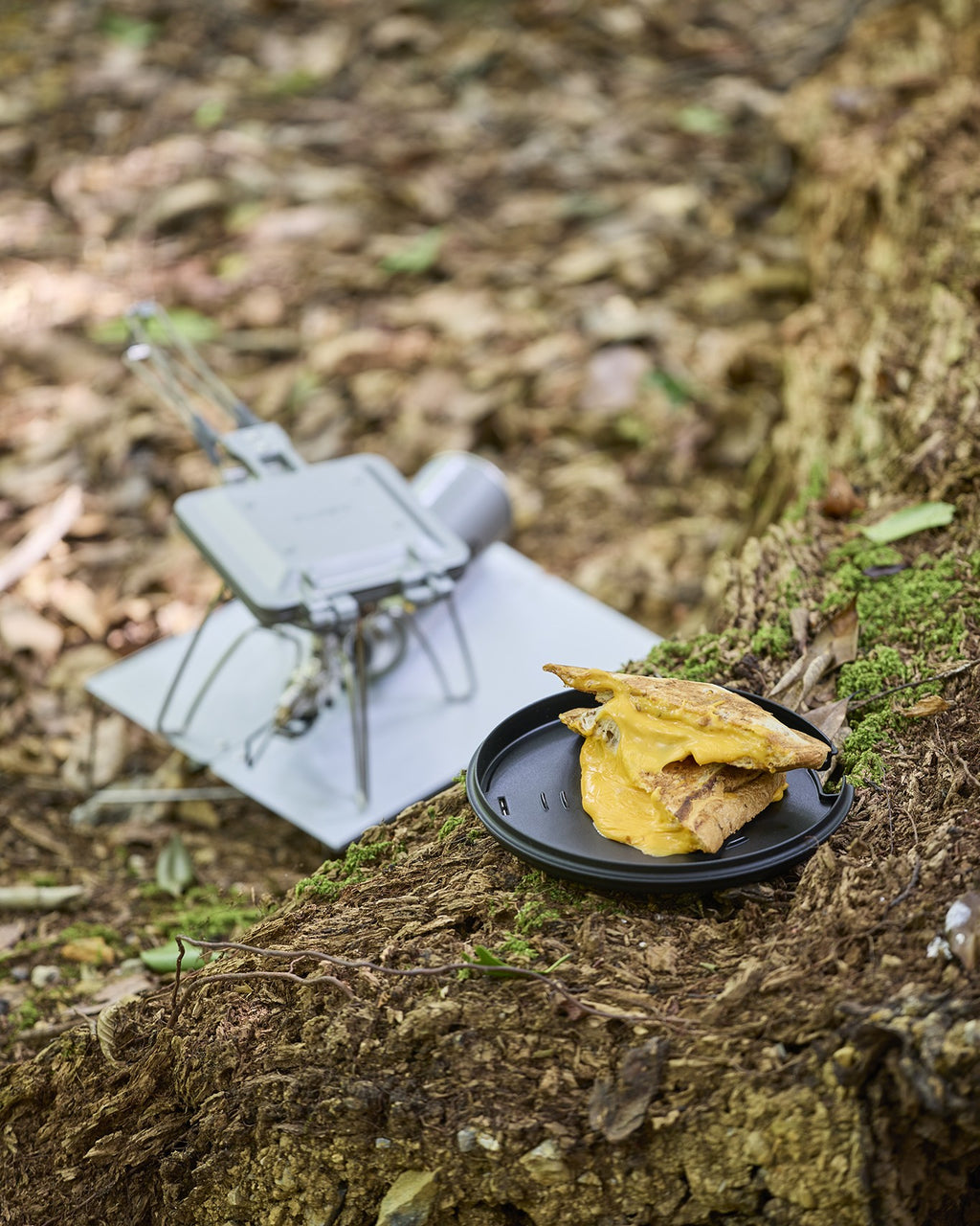 ボディには熱伝導率の高いアルミダイキャスト素材を採用。そして、軽量化されたハンドル。ボディは堅牢で開いても挟んでも安定感があります。底面の4点の小さな突起がゴトクを備えたバーナーにバランスよく乗ります。「レギュレーターストーブ ST-310」のゴトクには、元からひとつのギアであったかのようにカチッと乗り、安心して調理することが可能です。